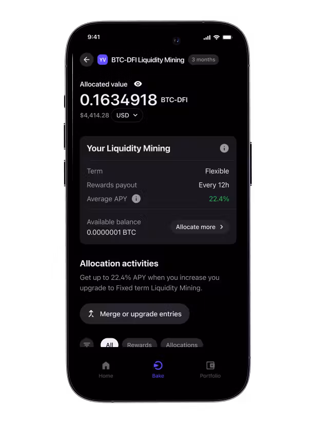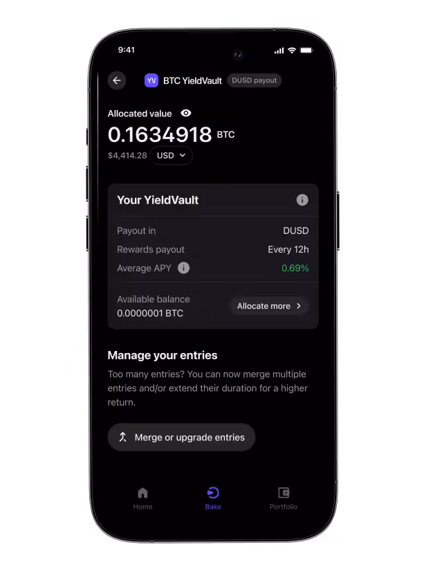 To use YieldVault, you must first download the Bake app. Once you’ve downloaded the app, simply go to “Bake,” choose “YieldVault” from the options, and follow the instructions.