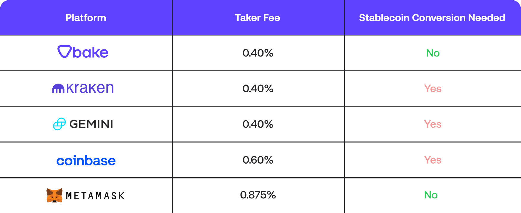 Bake's direct asset swaps remove the need for stablecoin conversion, reducing fees and minimizing slippage.