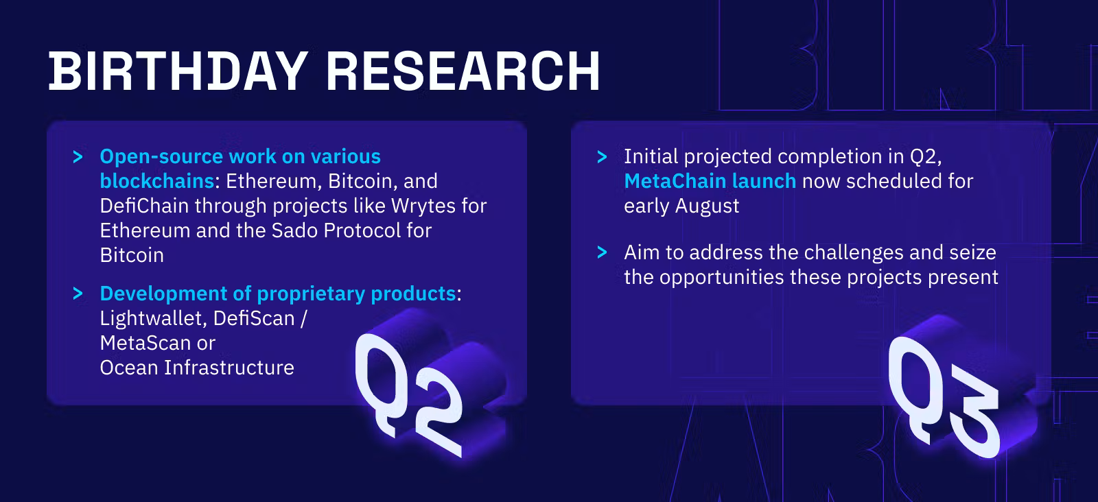 In summary, while the Birthday Research team faced some challenges this quarter, they also achieved noteworthy progress. As we move into Q3, we aim to address the challenges and seize the opportunities these projects present. We are confident that both our open-source contributions and proprietary product development will yield significant benefits in the long term.