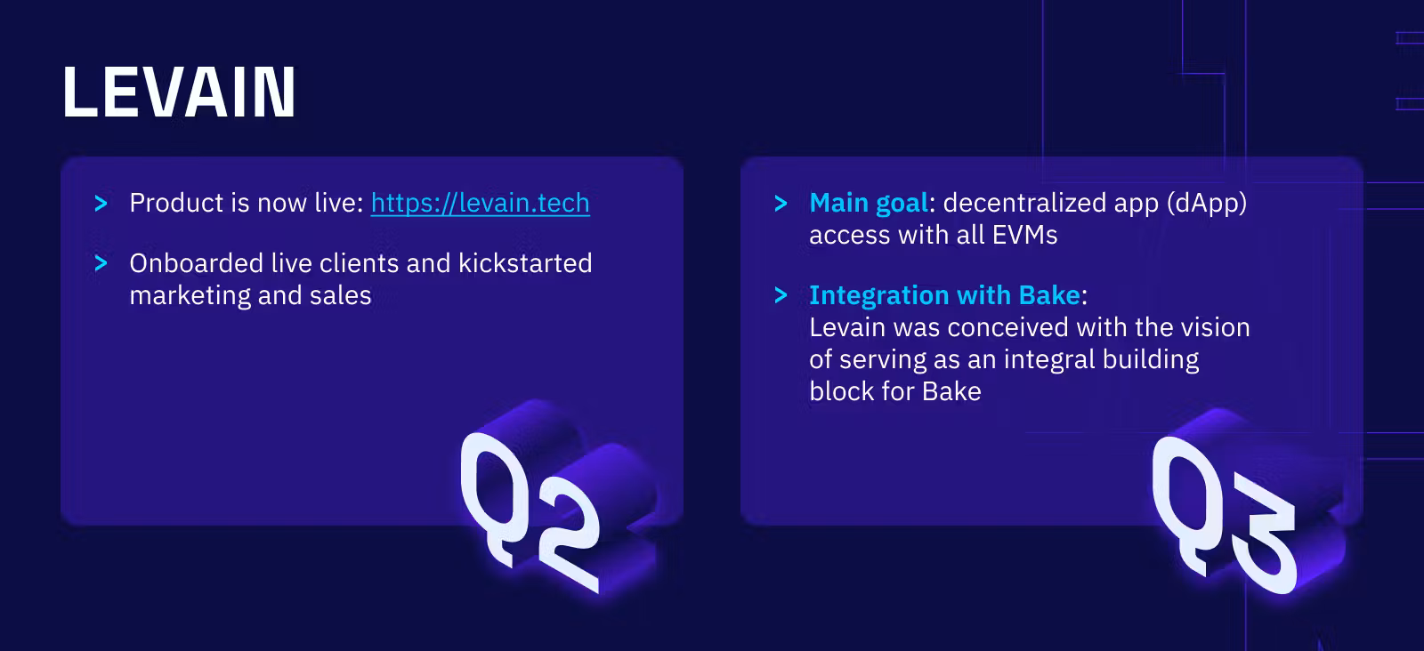 - Client Acquisition: We've begun to onboard live clients, marking an exciting milestone in Levain's journey. We look forward to working closely with these early adopters and leveraging their feedback to refine our offerings.