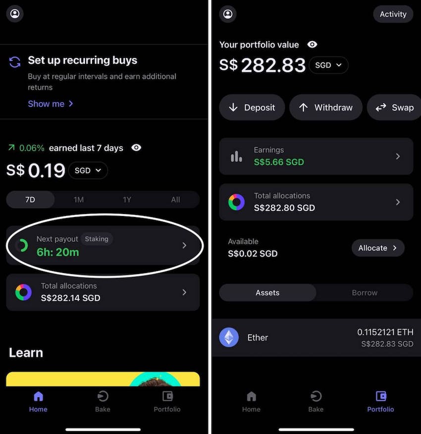 Bake also empowers you to take charge of your portfolio, enabling you to track when your payouts come in and view all your holdings at a glance: