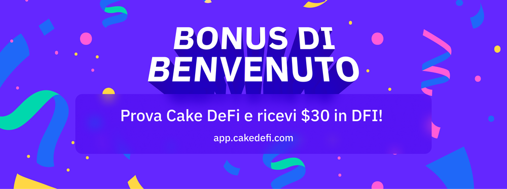 Cake DeFi ti permette di ottenere $30 in DFI GRATIS e iniziare a ricevere cashflow sulle tue criptovalute in soli 5 minuti!