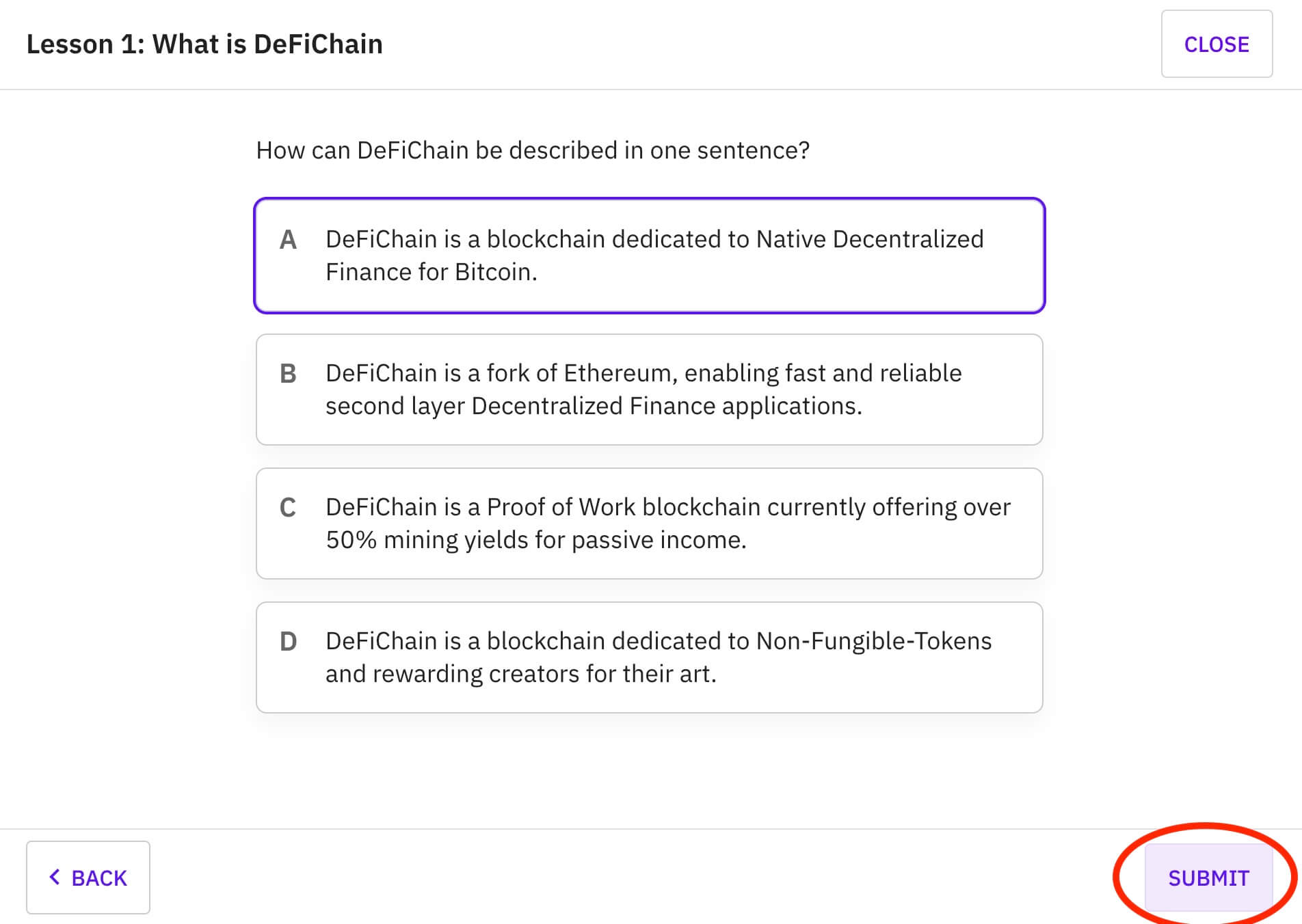 Our first “Learn & Earn” course is available today, and can be accessed here. The course is conceptualized in blocks of five lessons and takes no more than 5 - 10 minutes to complete, dealing with the most important facts about DeFiChain, the most popular blockchain on Cake DeFi that supports many of our products.