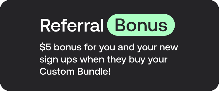 Additionally, you'll earn a $5 bonus for every new sign-up who buys your Custom Bundle. We've made it a win-win situation: Your friend also gets a bonus!