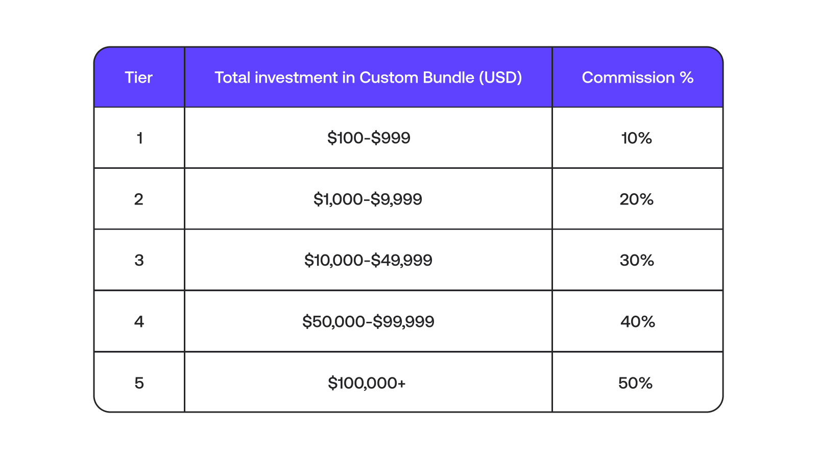When others buy your Custom Smart Bundle investment idea, you earn affiliate commissions, as illustrated in the table below: