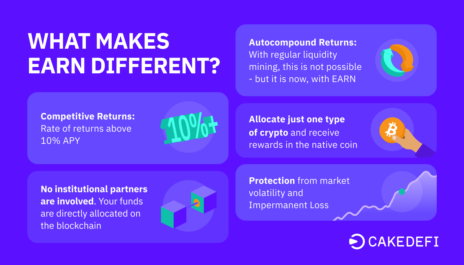 - Autocompound Returns: With regular liquidity mining, this is not possible - but it is now, with EARN.
