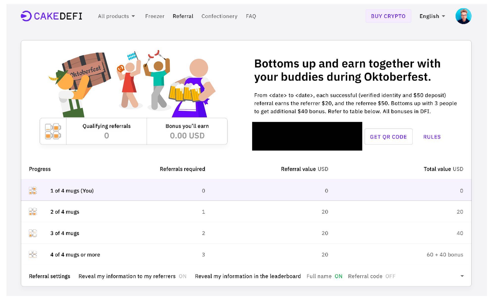 Experience the spirit of the Oktoberfest firsthand by participating in our Cake DeFi Oktoberfest promotion. From September 16, 2021, 08:00 UTC to September 30, 2021, at 08:00 UTC, you'll have the chance to earn unlimited DFI referral rewards bonuses! Do you have what it takes to drink your friends under the table ;-)?