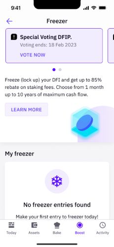 The second voting round is the normal voting round, which starts on 10 February and ends on 17 February. Unlike with the special voting round, users can directly cast their vote in the app. This will also be the standard for future voting rounds. To be eligible to vote in this round, customers must have at least 60 days remaining in their staked DFI Freezer allocation at the point of the start of the voting round. The voting closes 7 days before the end of a voting round.