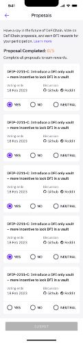 Participating in the on-chain governance voting process on DeFiChain not only allows customers to have a say in the future direction of the blockchain, but also provides an opportunity to earn rewards. These rewards come in the form of DFI, the native token of DeFiChain, and are paid out to voters from fees that are contributed by proposers.