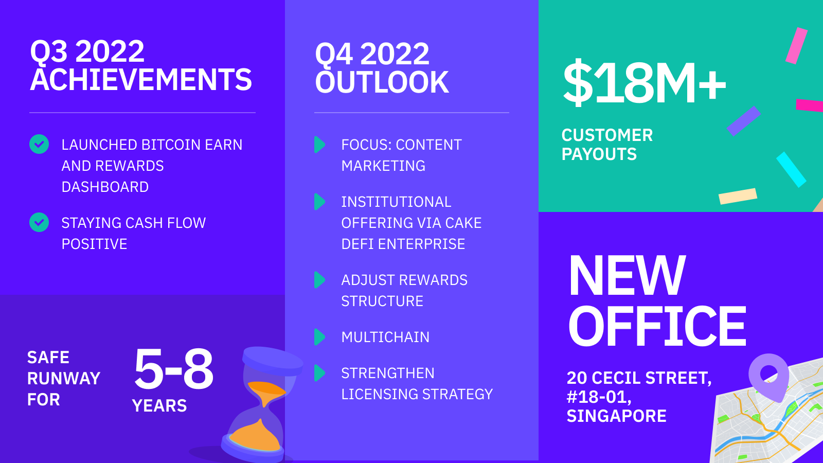 - Despite letting a few team members go due to poor performance, we grew our headcount to 155. More than 100 of them are located in Singapore. As one of the few companies in the space still hiring aggressively, we're expecting to add 15 to 20 team members in Q4 to reach 170 by end of year: https://cakedefi.com/jobs