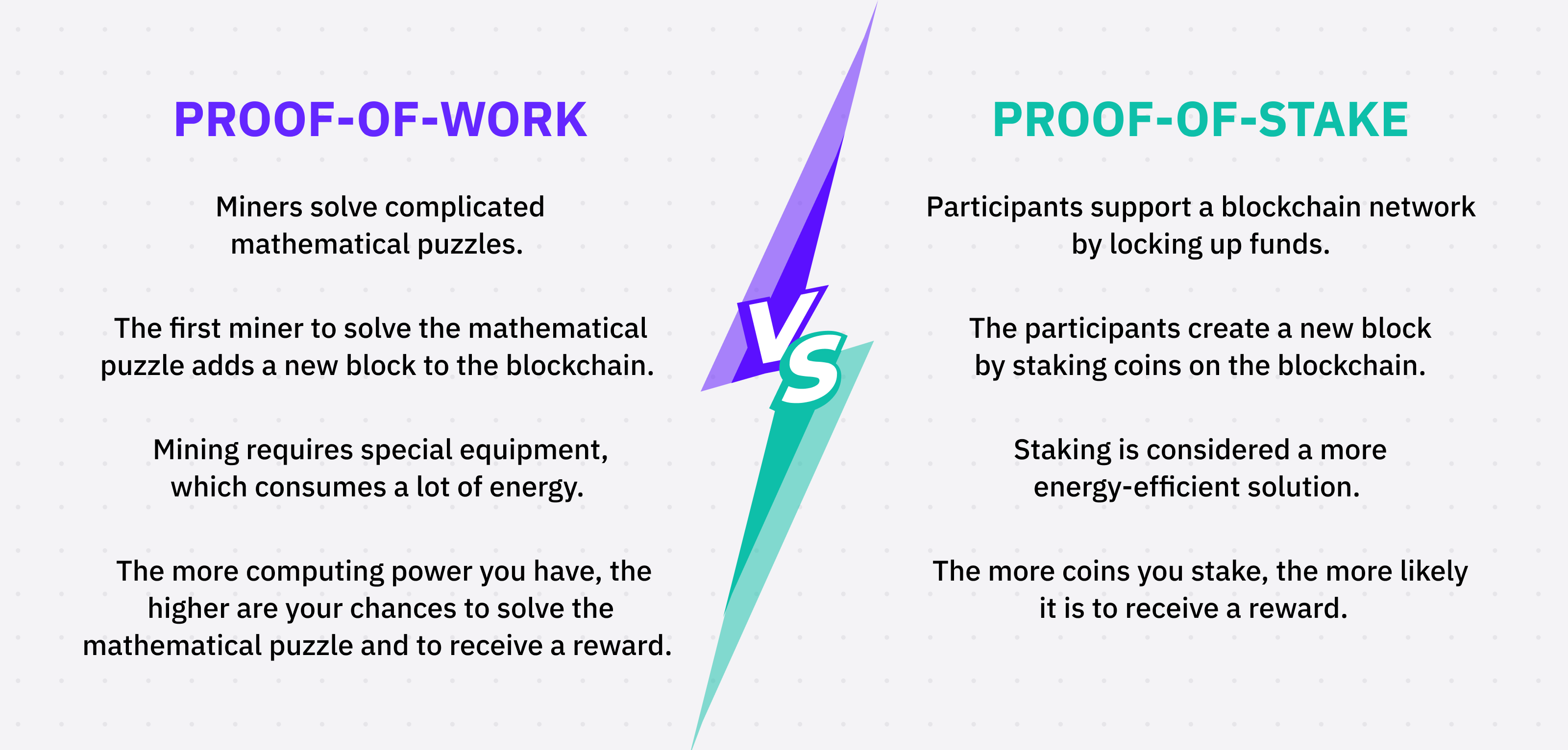 Staking is the second-oldest consensus mechanism and has emerged in response to the growing energy consumption from Proof-of-Work (PoW) protocols such as the one used by Bitcoin. The idea behind this way of validating transactions on the blockchain is different in a way that you do not need expensive hardware equipment to mine new blocks, but rather you have to acquire and set aside a certain amount of coins that validate the transactions on the blockchain. This innovative way of securing the blockchain is known as Proof-of-Stake (PoS).