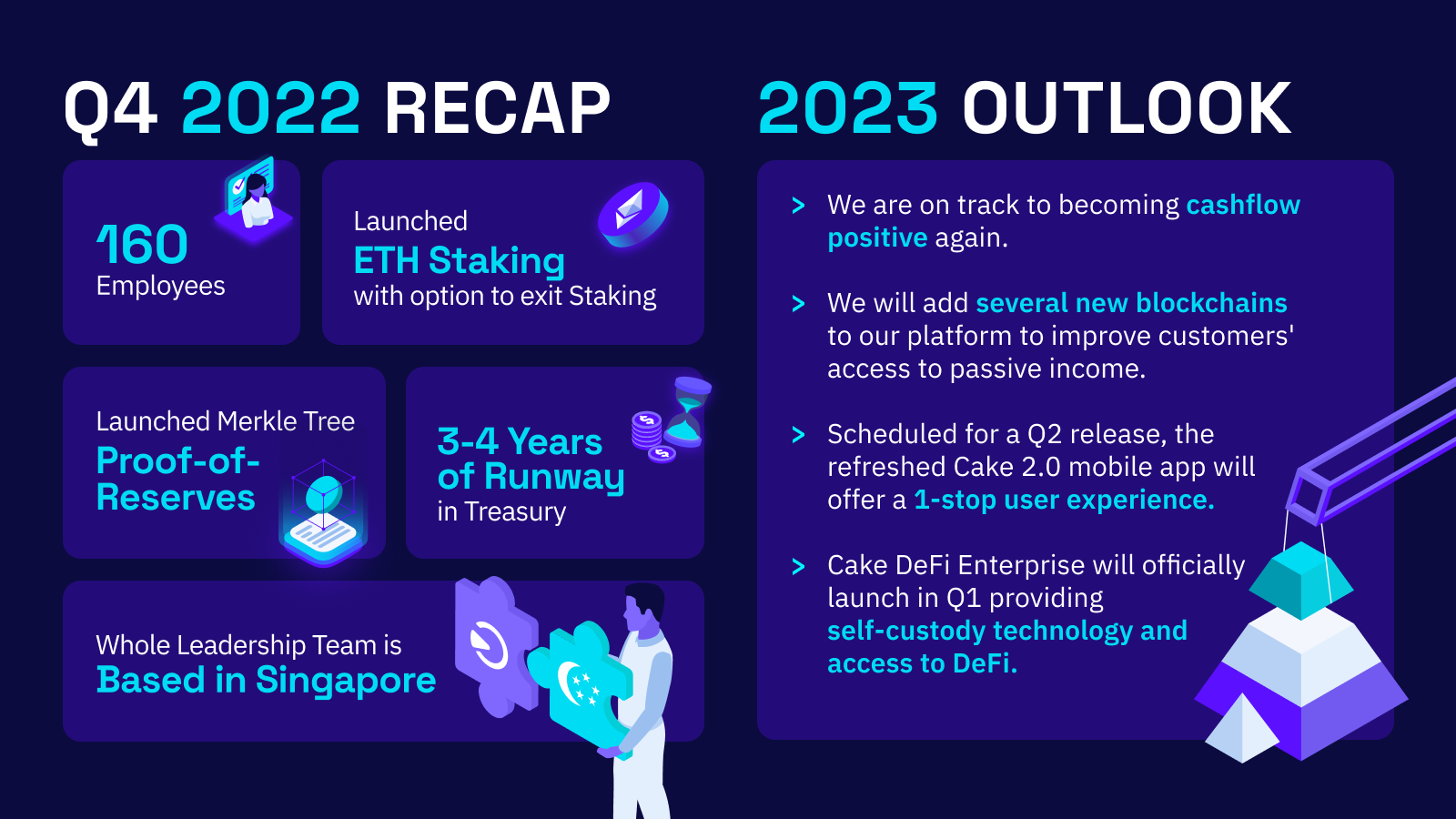 - The Cake 2.0 mobile app will also be released in Q2, offering a new 1-stop user experience. This will allow our platform to be used by users who are not crypto-native.