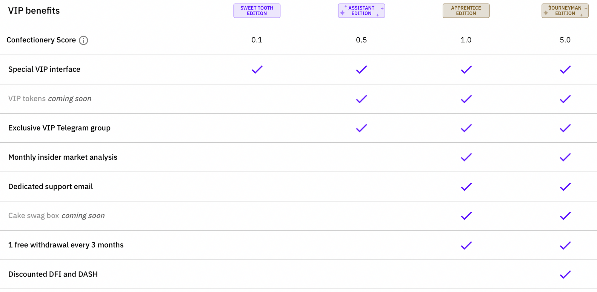 As you can see, there's something for every passionate baker in Cake DeFi's new VIP program – whether you're someone with a sweet tooth holding 0.1 BTC, or an ambitious master baker with 500 BTC! We hope that we've got your taste buds going, and are able to create a program that offers you even more value.