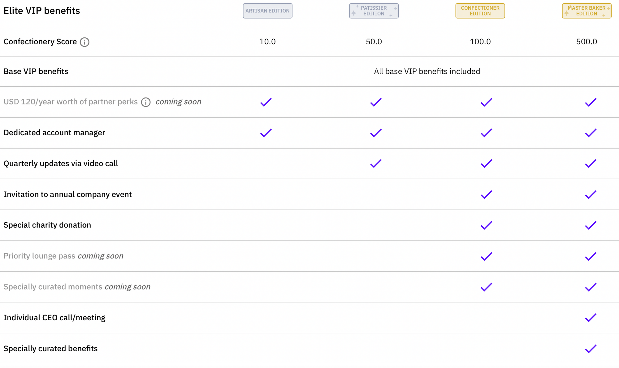 The new VIP program is not only packed with a variety of new benefits, guaranteed to make any baker's heart flutter, but is also designed to reward our bakers with the most lucrative products and services. From a special VIP interface, a swag box (t-shirts, stickers, notepads), to airport lounge access, the benefits we offer are simply phenomenal.