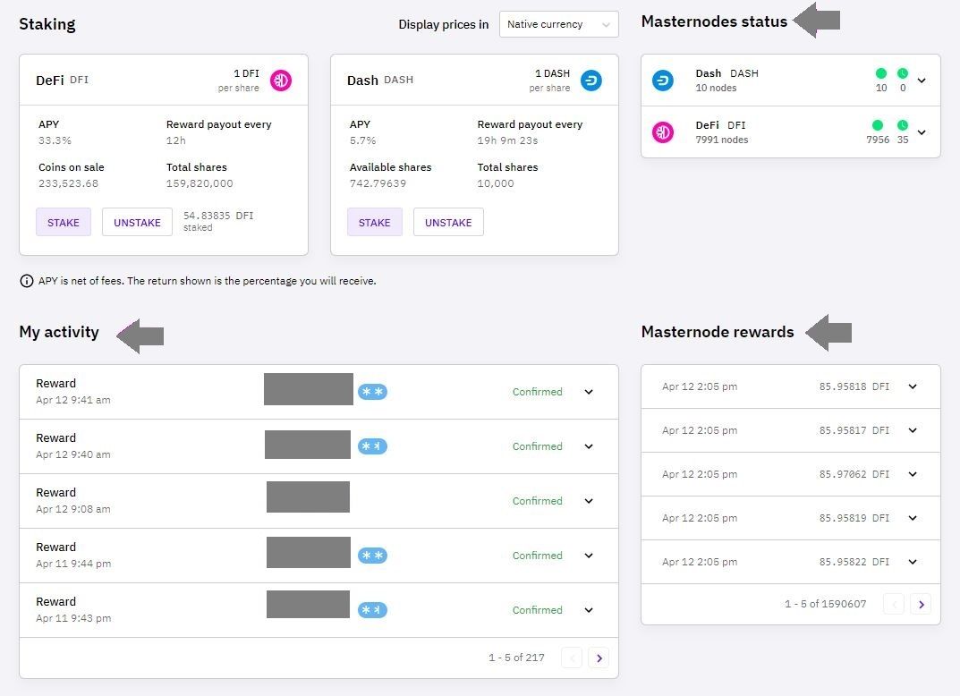 With that, it should be noted that you can only stake cryptos that use proof-of-stake consensus mechanisms such as DASH and DFI - the native cryptocurrency of the DeFiChain blockchain.