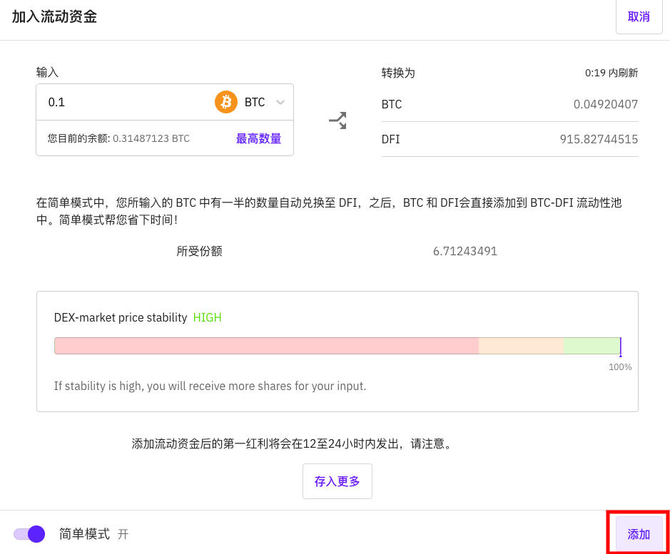 4) 当您想进入流动性池,可以点入「加入流动资金」选项