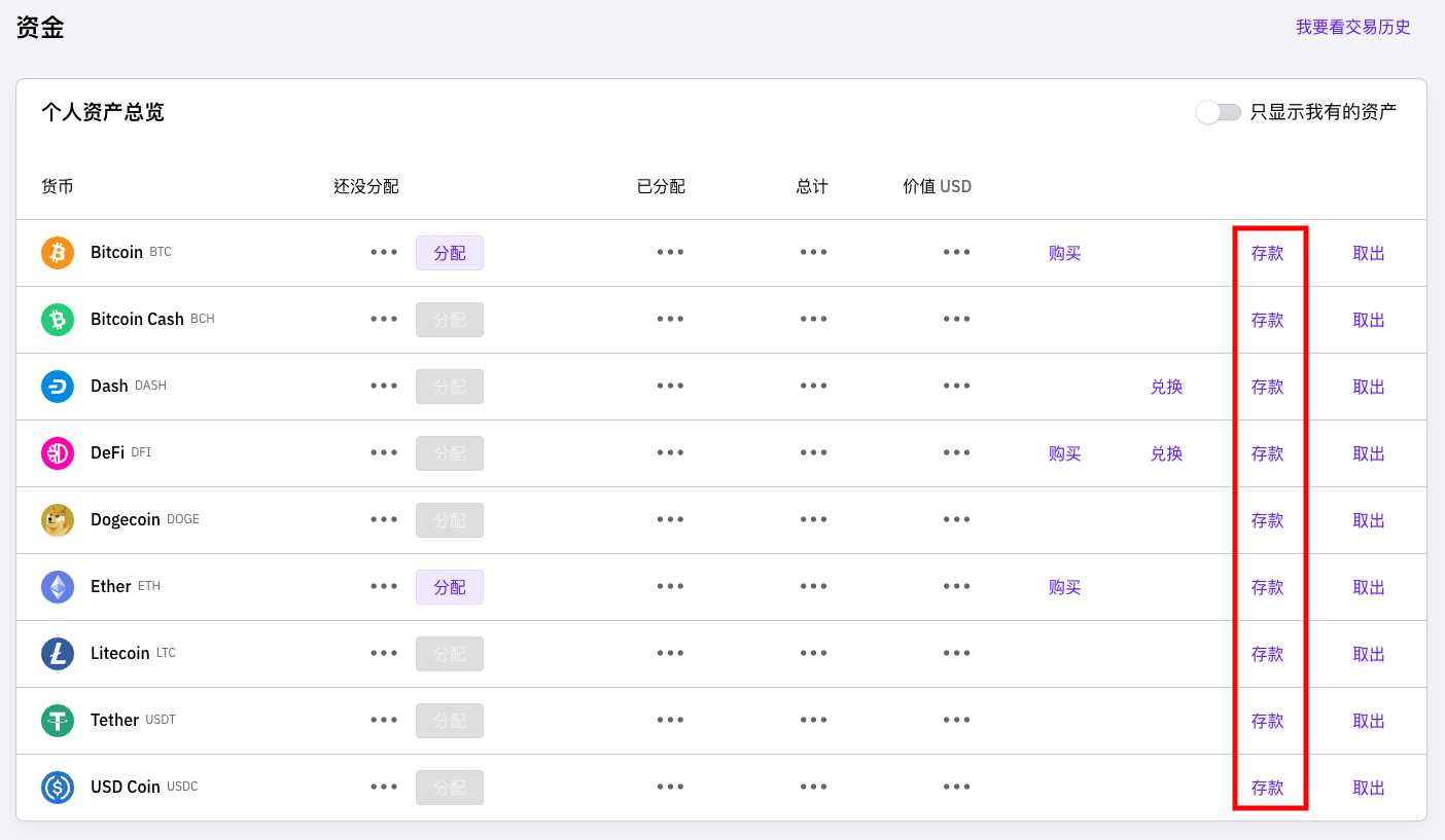 您可以在资产余额页中找到您购买或存入的加密货币: