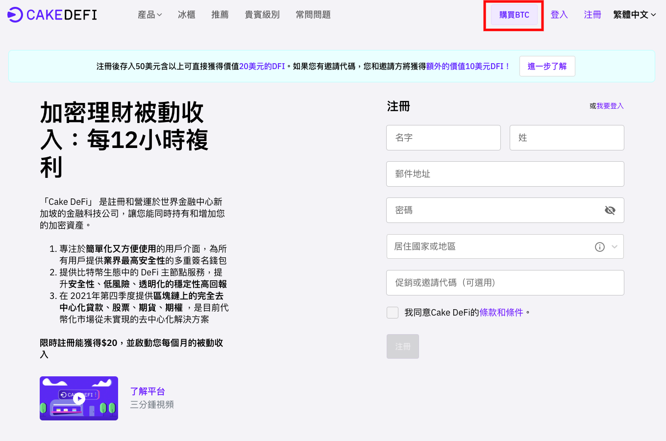 登入您的 Cake DeFi 帳戶