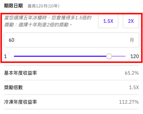 冰櫃是為長期使用 Cake DeFi 流動性挖礦和質押產品系列而設計的。有些用戶想使用超過一個月,有些想用戶甚至從 Cake DeFi 在 2019年開始營運就成為被動收入用戶。我們最初在 2021年為長期支持我們產品的用戶推出高達 85% 的平台費用回饋,也在同年第二季度末引入鎖定在遞飛鏈上的五年和十年雙倍質押獎勵(關於區塊鏈資訊請見以下鏈結)。所有用戶可鎖定一個月至十年的時間,依據個人被動收入的目的可調整。當您把資金放入冰櫃時,您必須等待期限結束後才能取出資金。只有最初進入冰櫃的數量才鎖定的,在每12小時發的流動性挖礦或質押獎勵可隨時分配到其他產品或取出帳戶。