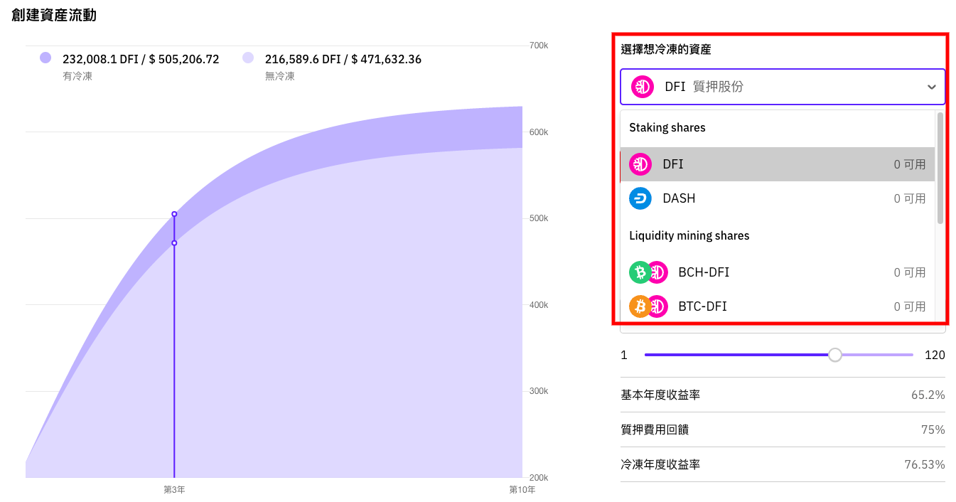 - 選擇想入冰櫃的貨幣資產(質押股份或流動性挖礦)
